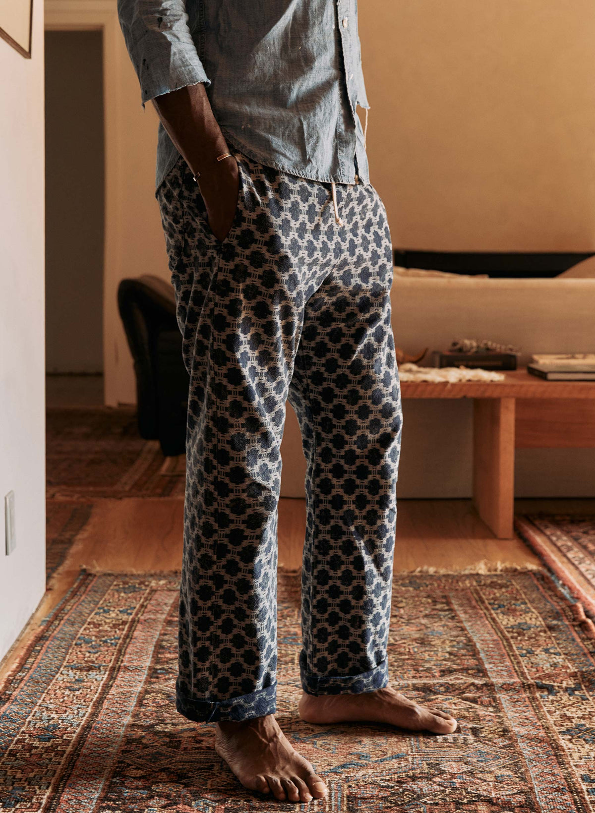 featuring a highly adjustable drawstring waist, a single back patch pocket, and a gusseted crotch, the fethiye is the perfect pant to lounge in on a Saturday afternoon.
