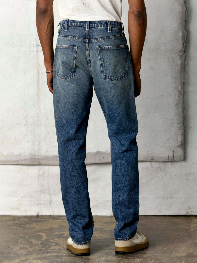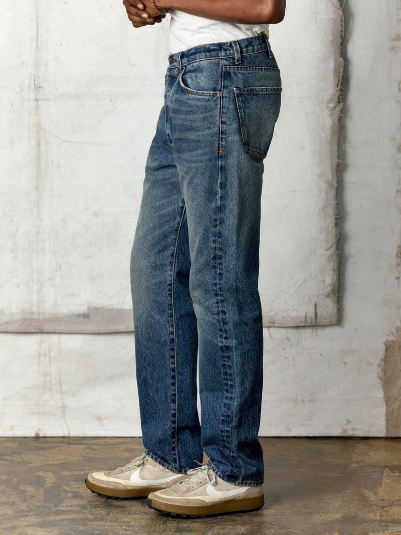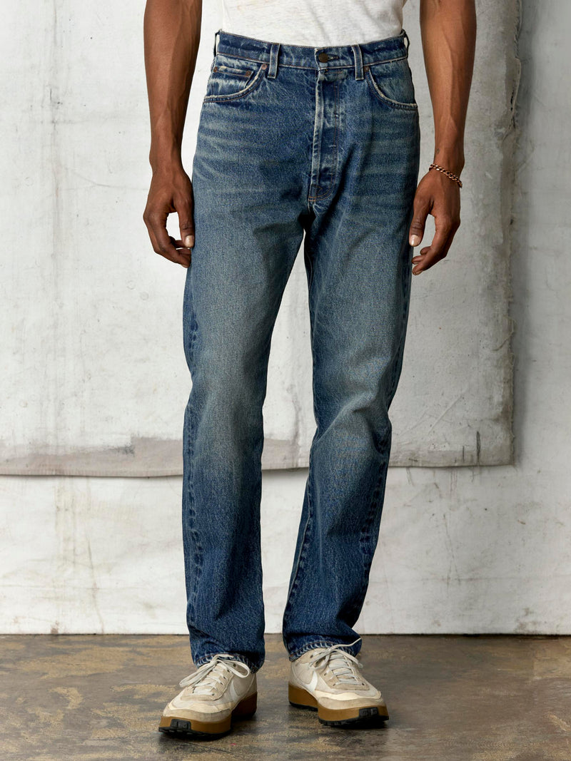 a mid-rise with a relaxed, lower slung top block down to a clean tapered leg