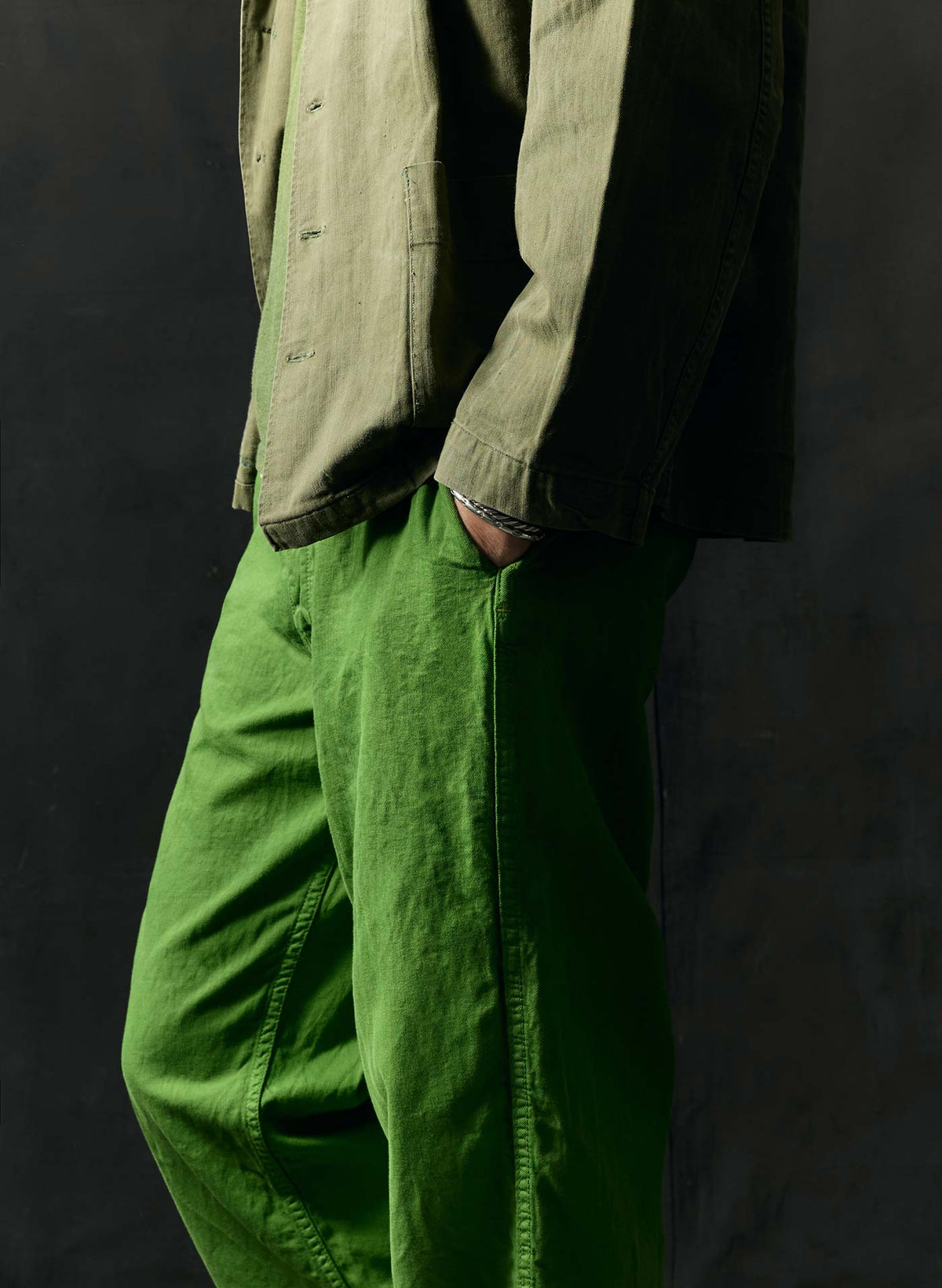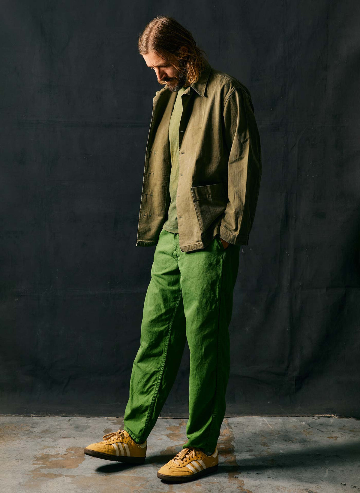 patterned, cut, and sewn in the USA from a 6.5oz cotton-linen blend.