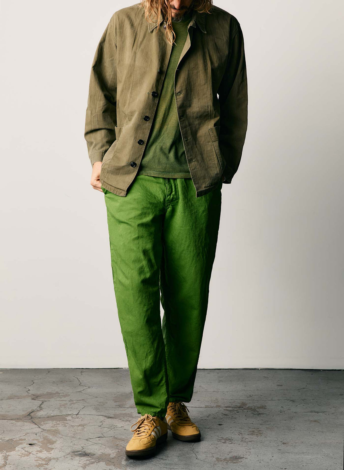 inspired by a beautiful piece of vintage French workwear, and made from an airy cotton-linen blend so you can take leisure with you... wherever you may go.