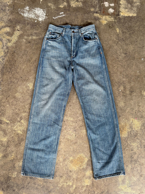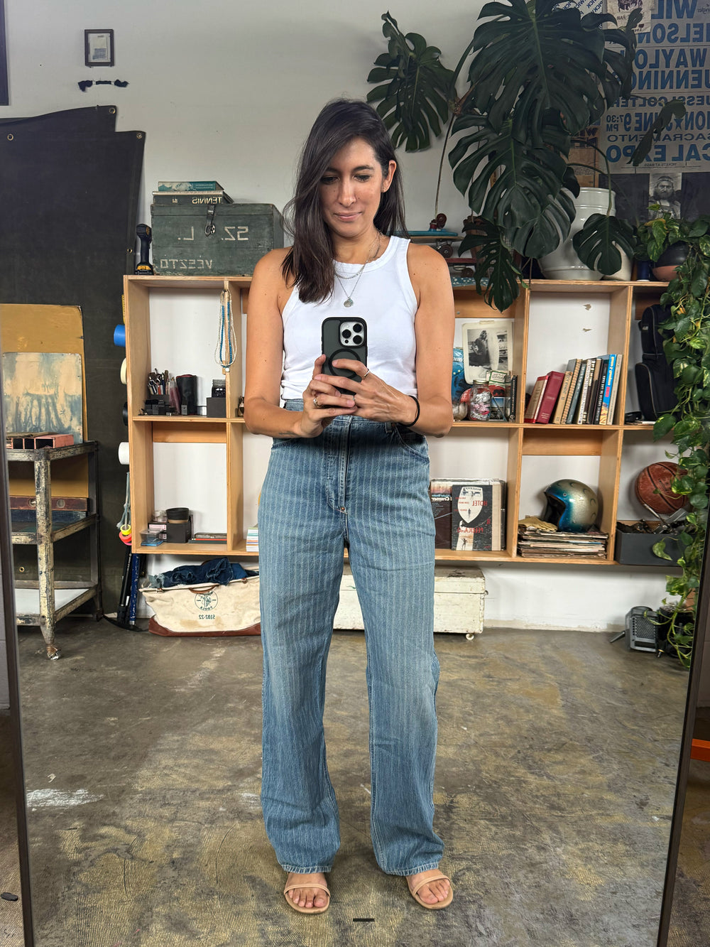 the buckleback jean in washed indigo stripe