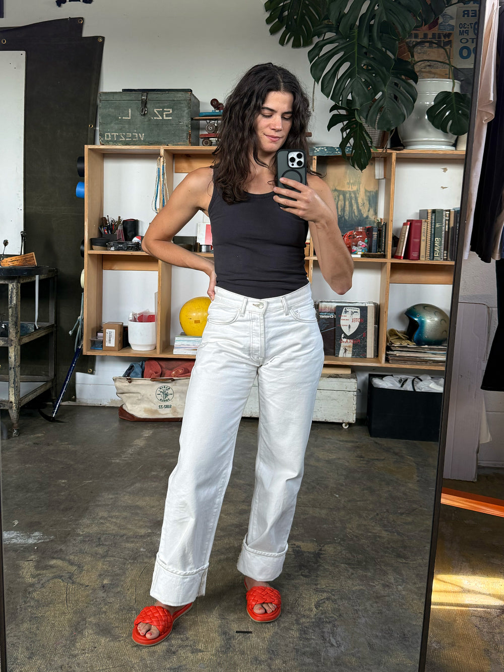 with an easy leg and a white wash I felt like I could wear these with anything. I was pleasantly surprised how versatile the mid-rise is, and how easy it was to wear throughout the day -- from sitting at my desk to chasing my toddler around, these take it all in stride with me.