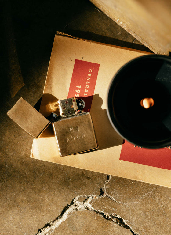 hand stamped "mi amor" zippo