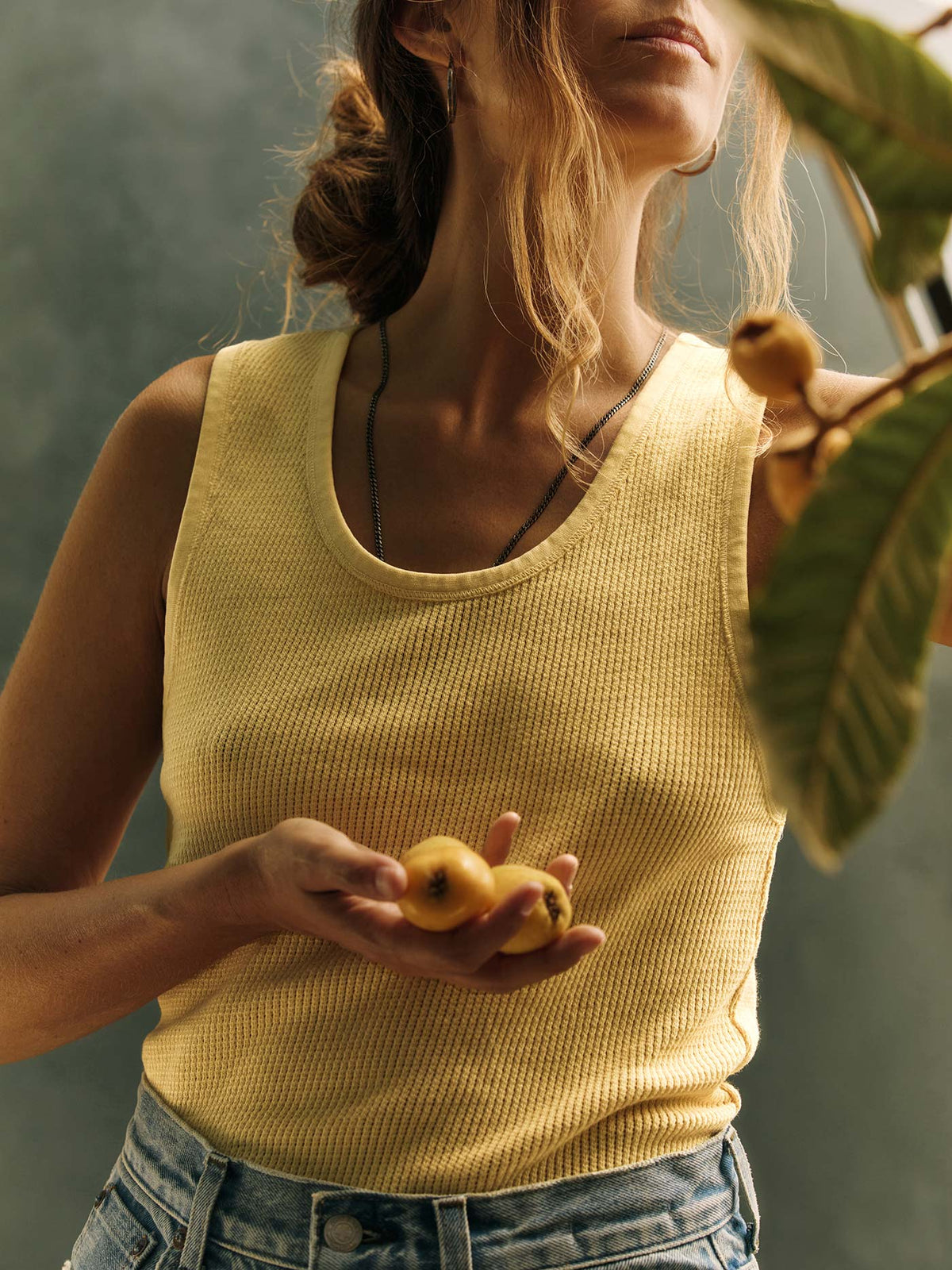 sewn from a beautiful open-knit ribbed fabric, it's the perfect companion for long days in the sun -- and the warm evenings that follow.