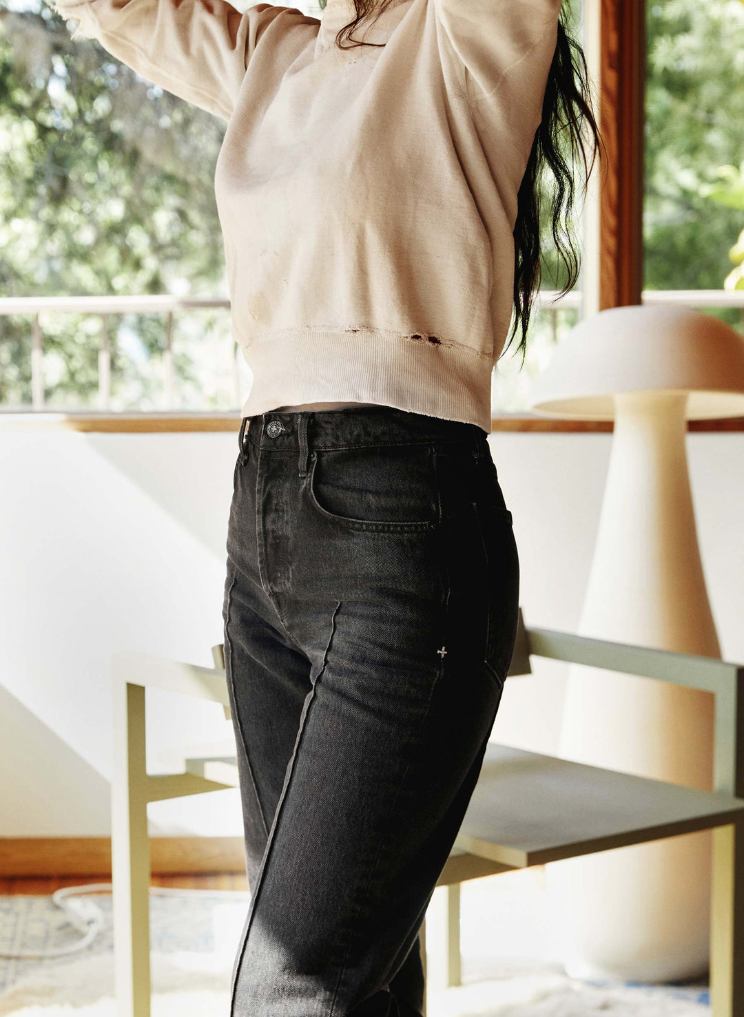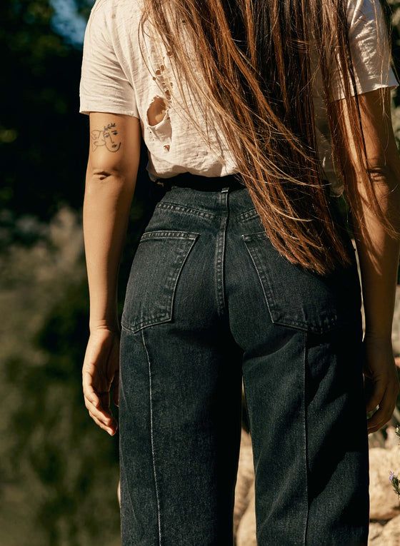 piggybacking off a vintage jean from our archive, we first developed wyatt as a kind of experiment — a subtle pintuck down the front of the legs, a raw hem at the bottom. this time, we finished the hem off... just to give you the option.